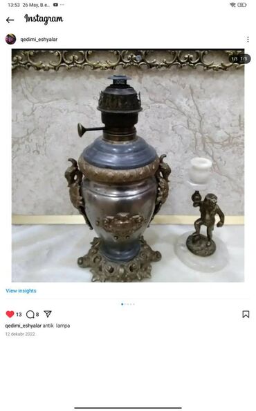 Lampâ neft ilə yanır,qedimidır. 1 ədəd qaldı.suse altliqli
