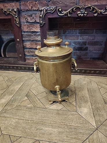 Antik mis samovar - Material: tam mis gövdə və qapaq, taxta