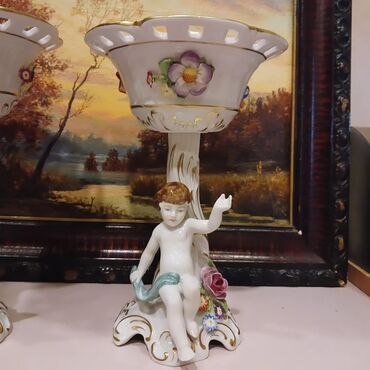 Zərif ağ rəngli, üzərində güllər təsvir edilmiş, qızılı haşiyəli dekorativ vaza. Vazanın ayağı mələk fiqurundan ibarətdir və kompozisiyanı tamamlayır. Gözəl dizaynı ilə interyerinizə zəriflik qatacaq.