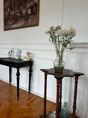 SATILIR 55 manata Telefon: 055-391-14-35 Cavanşir Dairəvi formalı, tünd qəhvəyi rəngli taxta yan masa. Masa oyma sütunlu ayağa və möhkəm dayaq təmin edən üç bükülmüş ayağa malikdir. Kiçik məkanla...