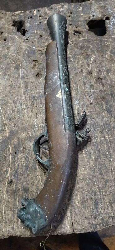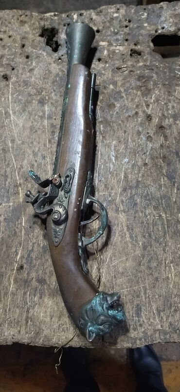 - Material: ağac gövdə, bürünc/metal detallarla bəzədilmiş lülə, teti̇k və qoruyucu.