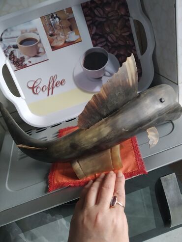 сделан из натурального рога,плавники из кости в отличной сохранности, длина 35 см