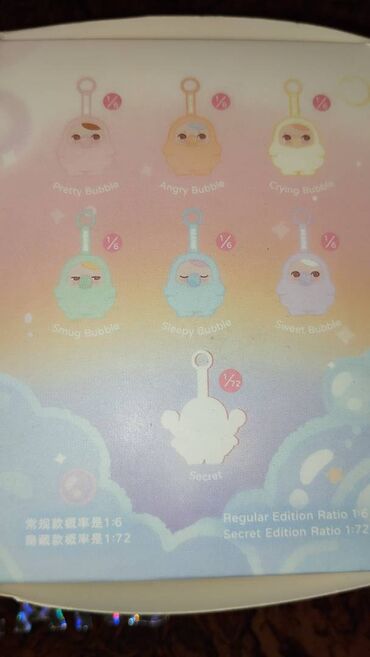 - Arxa tərəfdə kolleksiya siyahısı: Pretty Bubble, Angry Bubble, Crying Bubble, Smug Bubble, Sleepy Bubble, Sweet Bubble və “Secret”
