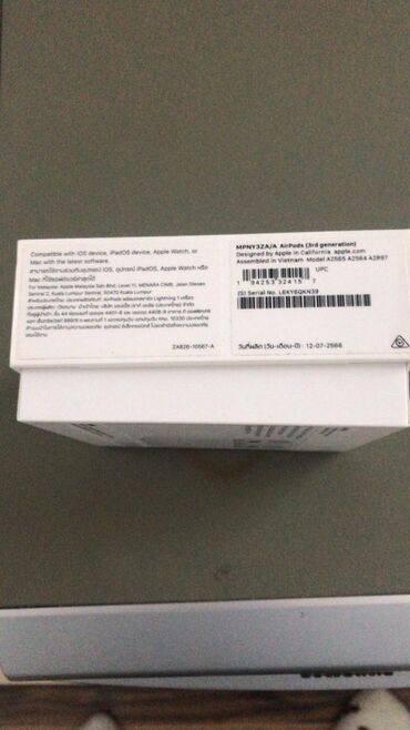 Qeyd: Qutunun üzərində “Designed by Apple in California. Assembled in Vietnam” və seriya məlumatları mövcuddur.