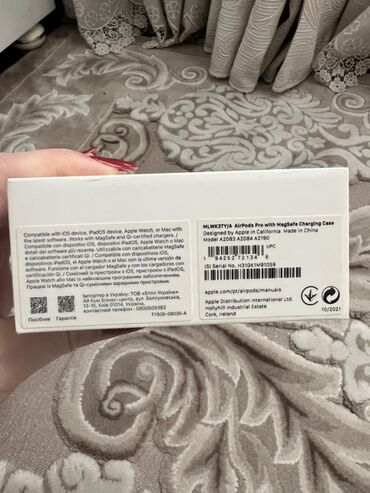- Qutu üzərində istehsal və uyğunluq məlumatları: Apple Inc., 2021; uyğunluq nişanları; seriya nömrəsi mövcuddur