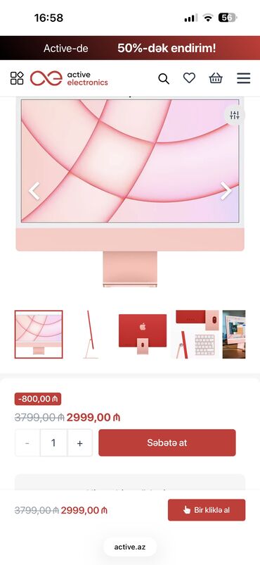 Evdə/ofisdə gündəlik iş, dizayn, multimedia və təhsil üçün güclü, səliqəli all‑in‑one həll. Şəkildə məhsul və rəsmi mağaza səhifəsindən görüntülər yer alır.