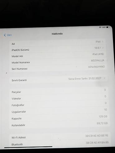Apple iPad (A16) planşet - Model nömrəsi: MD3Y4LL/A - iPadOS: 18.6.1
