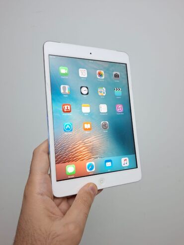 Apple iPad planşet -İ CLOD düsüb Modell: iPad (kompakt ölçülü – təxminən 7.9 düymlük ekran) - Rəng: Gümüş rəngli arxa panel, ağ ön çərçivə - Ekran: Multi‑Touch, ön hissədə kamera pəncərəsi - Ba...