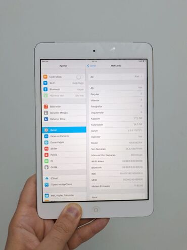 Ipad mini 1, wi-fi cellular 64 gb. Ən son yeniləmə IOS 9.3.6 - dır. Köhnə model olduğu üçün, ən son yeniləmə getmir artıq. İşlənmişdir, yeni kimidir. Whatsapp vasitəsi ilə əlaqə saxlaya bilərsiniz.