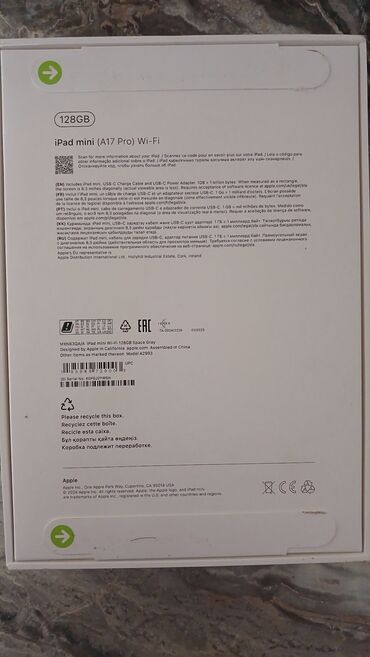 📱 Apple iPad mini 6 (Model A2993) – 128 GB (Wi-Fi) | Silver 🔹 Ümumi məlumat: Satılır Apple iPad mini 6 (Model A2993) —vəziyyəti ideal, yenidir. Cihaz 128 GB yaddaşa malikdir, Wi-Fi versiyasıdır (...
