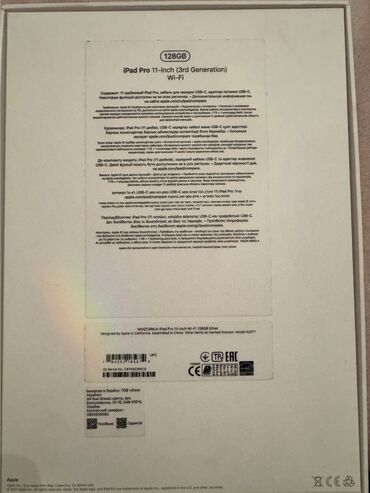 Peşəkar iş, dizayn, təhsil və media istehlakı üçün güclü planşet. Qutunun arxa etiketində texniki məlumatlar və seriya numarası mövcuddur.