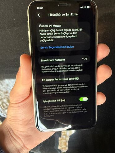- Batareya bölməsində maksimum tutum 75% göstərilir; “İyileştirilmiş Pil Şarjı” aktivdir