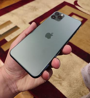 Apple iPhone 11 Pro Max – 256 GB, Midnight Green california LLA usb kabel qutusu var təmirdə olmayıb suda batmayıb cızıq qırıq yoxdu bir gün şarj saxlayır 72 pil