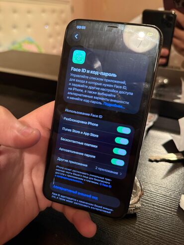 IPhone 11 Pro Max satılır - 6.5" Super Retina XDR OLED ekran – yüksək parlaqlıq və kontrast - Üçlü 12 MP arxa kamera (Wide, Ultra‑Wide, Telephoto) + 12 MP TrueDepth ön kamera - 4K video çəkilişi, ...