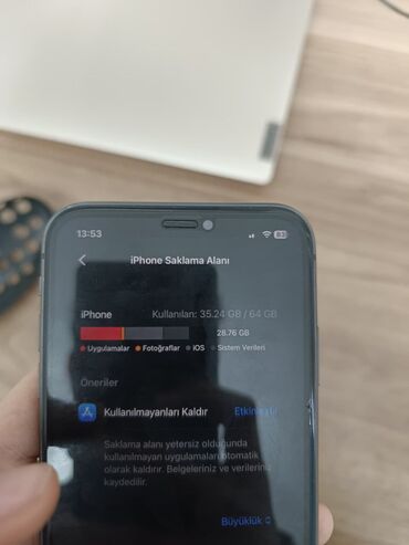 Apple iPhone 11 – qara rəng Yaddaş 128 Pil:71% zavod Xüsusiyyətlər: - 6.1" Liquid Retina HD ekran - Face ID, True Tone, Haptic Touch - İkili 12 MP arxa kamera: geniş + ultra geniş; 4K video, Portre...