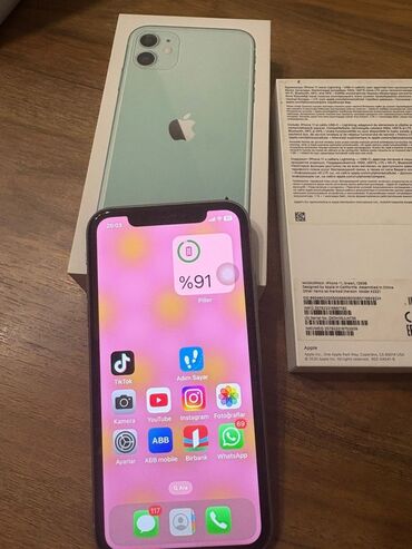 IPhone 11, 128 GB, Ağ, Zəmanət, Face ID, Sənədlərlə