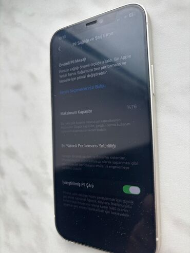 Apple iPhone 12 – Ağ rəng -Yaddaş 128Gb -Pil 76% -Face id işləkdir -Qutu adabtr var Heçbir detalı dəyişməyib zavod telefondur ideal vəziyyətdə Real alıcılar narahat etsin 0514441402 whatsap