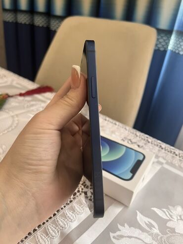 Apple iPhone 12 – mavi rəng Xüsusiyyətlər: - Ekran: 6.1" Super Retina XDR (OLED), Face ID çentiği - Korpus: düz kənarlı dizayn, mavi rəng, sol tərəfdə səssiz rejim açarı və səs düymələri - Prosess...