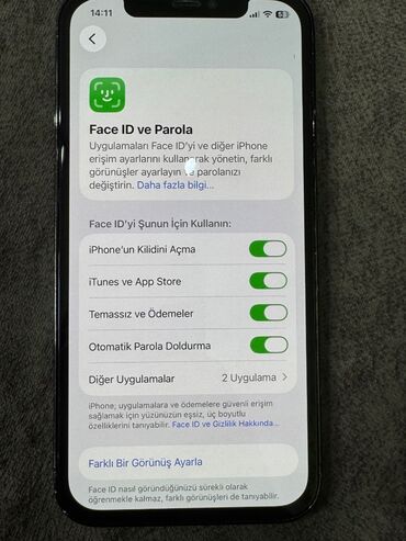 - iOS ilə işləyir; Face ID və Parol bölməsi şəklinədək göstərilib