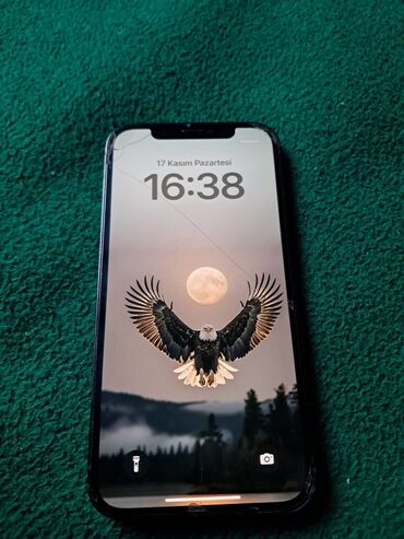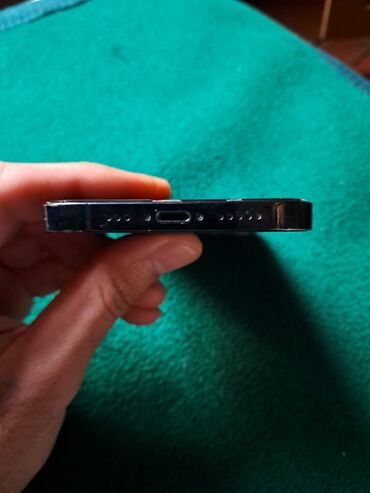 Bu, Apple iPhone 12 Pro Max modelidir. Qara rəngdədir və arxa tərəfində üç kamera sistemi, həmçinin LiDAR skaneri mövcuddur. Cihazın ekranında vaxt və tarix görünür, istifadəçi interfeysi iOS əməli...