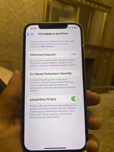 - Parametrlər ekranında “Pil Sağlığı və Şarj Etmə” bölməsində Maksimum Kapasite: 83%