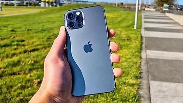 Model: iPhone 12 Pro, üçlü kamera modullu arxa dizayn, düz kənarlı korpus.