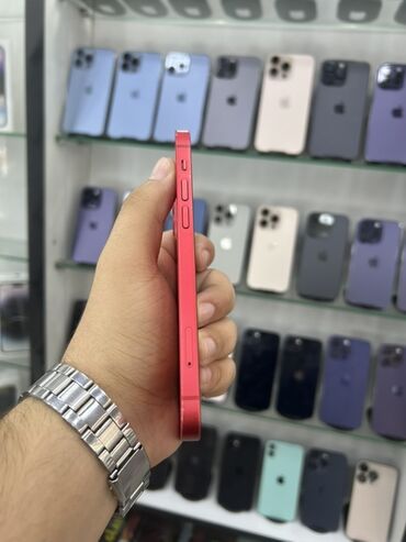 Satılır iPhone 12 – 128 GB yaddaş, qırmızı (PRODUCT RED) rəngdə model.