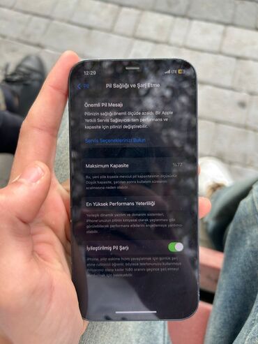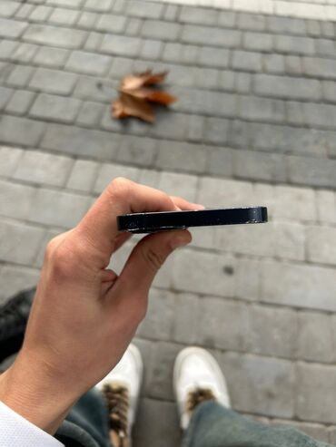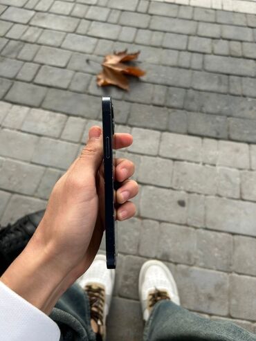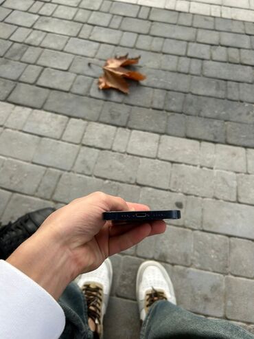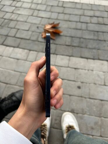 Məhsul: iPhone (12 seriyasına bənzər, göy/“Blue” rəng) - Arxa tərəf şüşə, düz kənarlı dizayn, ikiqat arxa kamera və LED flaş - Face ID dəstəyi (Ayarlar görüntüsündə aktivdir) - OLED ekrana malik, T...