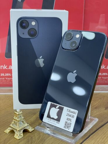 Apple iPhone 13 (sade) – 256GB, Midnight (tünd göy/qaraya çalan) Xüsusiyyətlər: - Yaddaş: 256GB - Ekran: 6.1" Super Retina XDR OLED, True Tone - Prosessor: A15 Bionic çip, yüksək performans və ene...