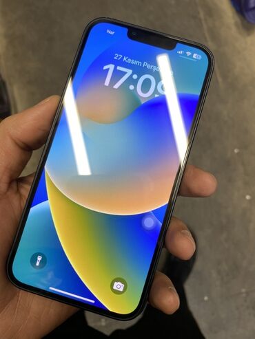 Apple iPhone 13 – Mavi rəng Xüsusiyyətlər: - Ekran: 6.1" Super Retina XDR (OLED), Face ID çentiği - Rəng: Mavi - Yaddaş: iPhone 13 seriyasına məxsus daxili yaddaş (şəkillərdə iOS interfeysi görünü...