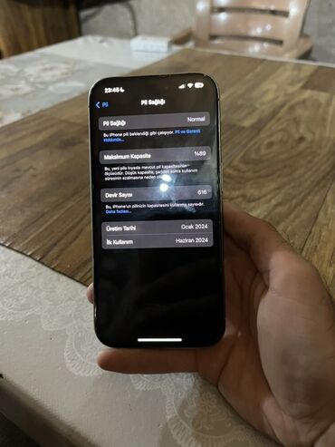 Iphone 15 Pro Natural Titanium 128GB 92% Pil 456 Pil devri Cızıqsız Tam ideal vəziyyətdə Hər bir funksiyası İşləkdir. Dəyişən detal yoxdur.