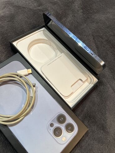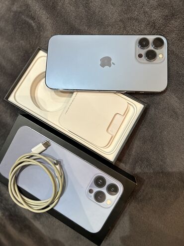 Qeyd: Şəkillərdə cihaz, qutusu və USB‑C to Lightning kabeli əks olunur. Başlıqdakı model iPhone 13 Pro max Sierra Blue