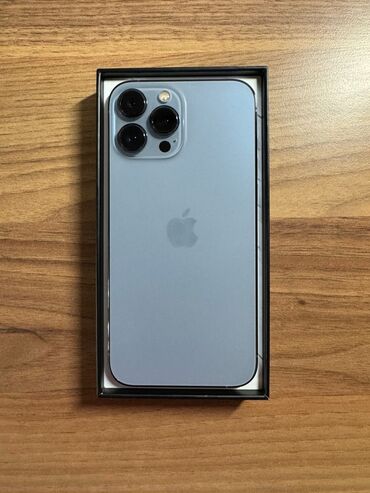 - iPhone 13 Pro modeli (Sierra Blue) qutusu ilə birlikdə təqdim olunur.