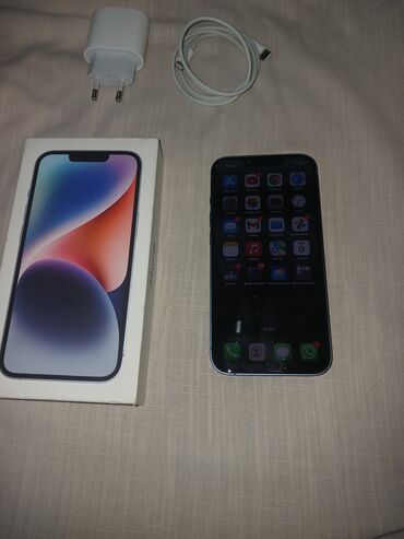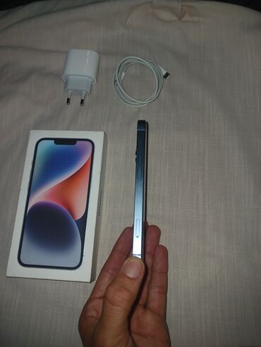 - Düz kənarlı dizayn, mavi arxa panel və parlaq Apple loqosu