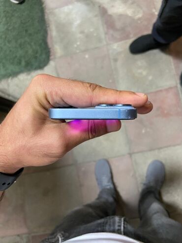 Apple iPhone – mavi rəng - Rəng: açıq mavi (mat arxa panel, alüminium kənarlar) - Ekran: tam ekran, Dynamic Island kəsiyi, True Tone dəstəyi - Arxa kamera sistemi: 2 ədəd böyük linzalı kamera + LE...