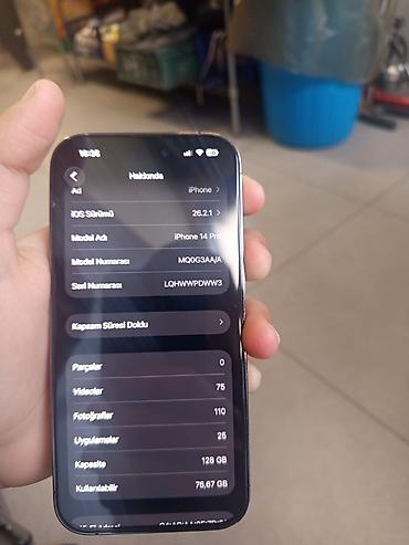 İp 14 pro 128 yaddaş 79 pil zavoddu açlmyb telefon deyşlmiyib heçbir prablemi yoxdur alacaqsızsa yazn vp 077.3620296