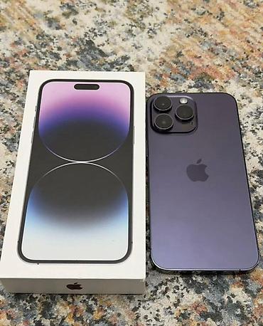 Apple iPhone 14 Pro Max – bənövşəyi (Deep Purple) Yaxwi veziyyetdedir,LLA (Amerika stokudu) e-simdi. Pil 78 Ustada olmayib.karopka usbsi var