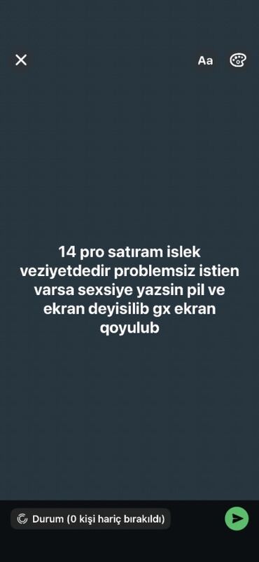 14 pro pil 78%,saat kimi işləyir,qızmadan donmadan söz belə gedə bilməz,qiymət sondu,kimə uyğundusa yazsın,boş boş yazıb narahat etməyin