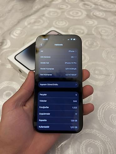 Salam Yaxşı telfonun yaxşı qiyməti olar. Üz vurmuyun! 📍ZAVOD📍 📍USDADA OLMAYIB📍 📍128 YADAŞ📍 📍79 PİL📍 HƏR BİR FUNKSİYASI İŞLƏYİR 1 ci sahibiyəm DƏYİŞİLMİŞ TELFONLA BİR TUTMAYIN.. Apple iPhone 14 Pro...