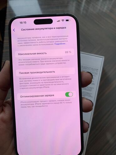 - Batareya: Maksimal tutum ekran görüntüsünə əsasən 89%, Optimallaşdırılmış şarj aktivdir
