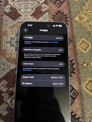 İphone 15 plus 256 88 pil zavod hersey normal veziyetde kosmetikasi cox super veziyetde deyil qutudan cixdiqi kimi deyil yeni yüngül renk geden yerleri var problemsizdi Face id falan hersey islek a...