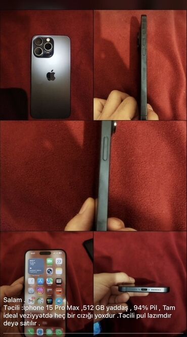 IPhone 16 Pro Max 256GB Yeni kimidir. Ekran ve korpusunda nöqte bele cızıq yoxdur. Kabura ve plonka ile istifade olunub. Karopkası ve adapter şunuru var. Fiziki sim + E sim her ikisi. Pil - 90% ...