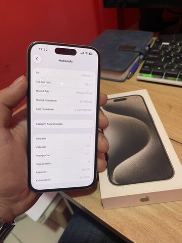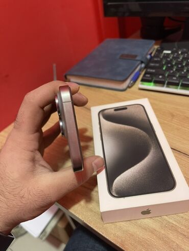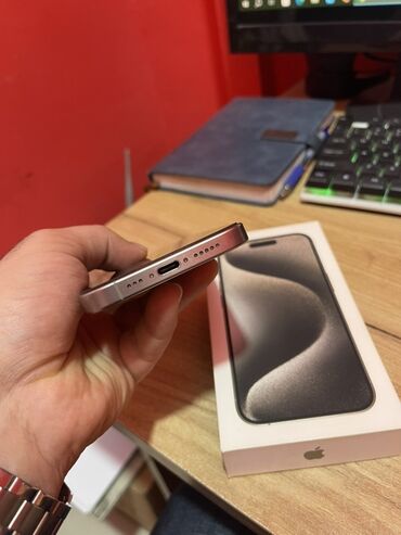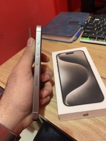 Apple iPhone 15 Pro – titandan gövdə, USB‑C girişi. Qutusu ilə.