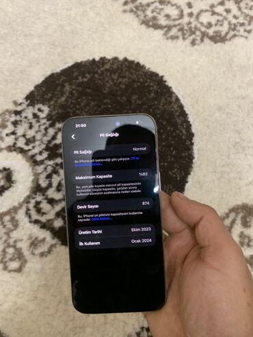 - Batareya: Maksimum tutum 82%, dövr sayı 874; “Normal” status