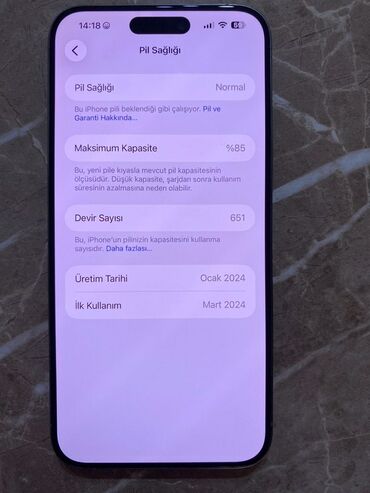 İphone 15 pro 256 yaddaş natural titanium.telefonun hecbir prablemi və balacada olsa cızığı yoxdur.təmiz telefondur pil səviyyəsi 89 faiz.ustada olmayib.mağazalarda satılan telefonlarla bir tutmayi...