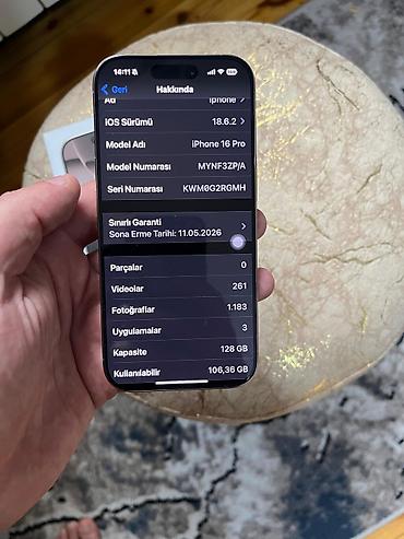 Apple iPhone 16 Pro - Yaddaş: 128 GB - Pil sağlamlığı: 93% - Pil dövriyyəsi (cycle): 260 - Face ID: aktiv (Face ID +) Xüsusiyyətlər: - Pro seriyasına məxsus üçlü arxa kamera bloku - Səviyyəli met...