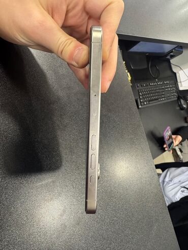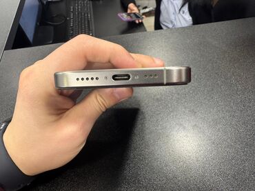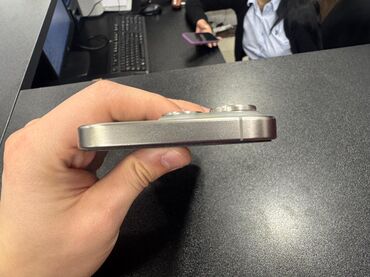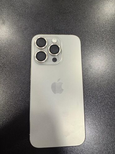 Apple iPhone (Pro seriyası) Xüsusiyyətlər: - Korpus: fırçalanmış titan çərçivə, mat arxa səth, kvadrat kənarlar - Rəng: boz/titan tonu - Ekran: tam ekran panel, ön hissədə Face ID üçün Dynamic Isl...