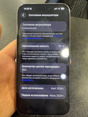 Gördüyüüz kimi üzerinde çiziyi falan da yoxdu, şexsi xanim işleden telefondu Apple iPhone 15 Pro MAX (Titanium) – 86% pil, USB‑C, 6.1" Super Retina XDR, Dynamic Island - Korpus: fırçalanmış tita...