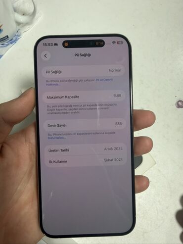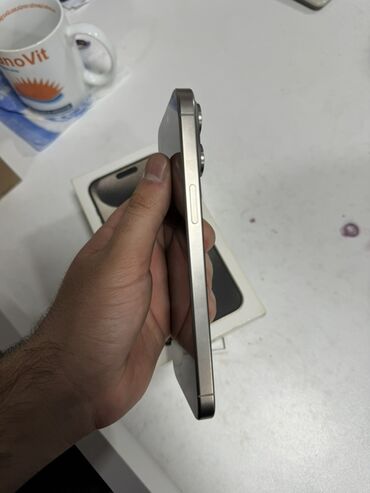IPhone 15 Pro, Titan göyümtrak-boz rəng (Natural Titanium) – 6.1" Super Retina XDR ekran, Dynamic Island. A17 Pro çipi, 5G dəstəyi. Arxa üçlü kamera sistemi: 48 MP əsas, telefoto və ultra‑geniş; Pr...