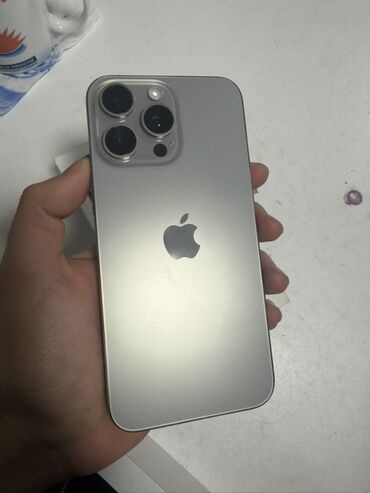 Apple iPhone (Pro seriyası) Xüsusiyyətlər: - Korpus: fırçalanmış titan çərçivə, mat arxa səth, kvadrat kənarlar - Rəng: boz/titan tonu - Ekran: tam ekran panel, ön hissədə Face ID üçün Dynamic Isl...